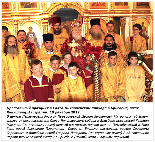Такая высокая и справедливая оценка заслуг Владыкой Антонием настоятеля, регента, старосты и прихожан Свято-Николаевского храма в Брисбене, воспринялась русскими людьми в 1936 году с воодушевлением не только в штате Квинсленд, но и по всей Австралии. Этот подвиг любви и верности православию был услышан во многих других странах людьми, потерявшими Родину.