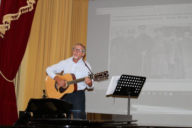 Сценарий презентации написала сама Людмила и я вместе со зрителями вновь окунулась в атмосферу тех времен, о которых повествует автор. Сценарий презентации был выстроен так профессионально, что за полтора часа мы пережили страницы истории, побывав в разных уголках земли, куда заносила судьба Арсения Савицкого. Практически, это был литературно-музыкальный спектакль, который открыла автор книги, прочитав под аккомпанемент Ирины Проджер свое стихотворение, где звучали слова: «Откройте душу у лампады, что не служилось, не сбылось; боль, эмигрантские досады, где был гоним, а где был гость…». Голос автора завораживал, Ирина очень красиво исполнила полонез «Прощание с Родиной», которую в 1784 году написал Михаил Огинский, прощаясь с родной Белоруссией. Полонез вошел в историю музыки под названием «Полонез Огинского. Родился Арсений Иосифович Савицкий в 1903 году в небольшом уездном городке Егорьевске Рязанской губернии (ныне Московская область). Далее описываются в книге родители, семья Арсения, его поступление в 1913 году в Хабаровский графа Муравьева Амурский кадетский корпус. Повествование в литературно-музыкальной композиции заостряет внимание зрителей на главе «Кадетский бал», в описании которого передаются патриотические чувства юных кадетов, их воспитание достоинства и привитие чести офицеров, их мысли, высокие мечты.