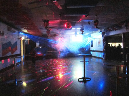 Комитет центра оформил зал для дискотеки очень красочно. Российские знамена придалиприсутствующим чувство родины. В течении шести часов продолжалась дискотека.