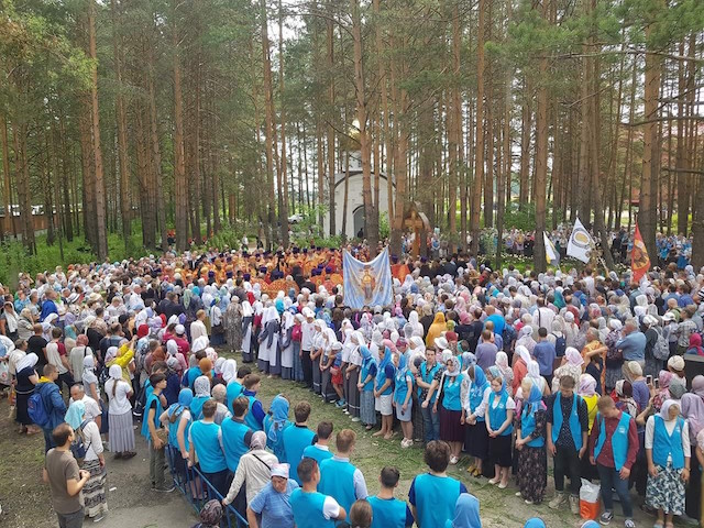Я сама в эти дни была в Екатеринбурге и видела, как народ прилетал в этот город отовсюду, включая австралийских, американских, итальянских паломников. Гостиницы были переполнены, приезжих в городе становилось все больше и больше. Такое скопление народа было еще и от того, что в преддверии памяти 100-летия кровавых событий на стадионе Екатеринбурга и в 11-ти российских городах с 14 июня по 15 июля 2018 шли мачты: Египет – Уругвай, Франция – Перу, Япония – Сенегал, Мексика - Швеция. Аудитория болельщиков в Екатеринбурге составила в те дни более 125 тысяч зрителей. Последний мачт состоялся 15 июля 2018 года, а на следующий день, в ночь с понедельника на вторник, с 16 на 17 июля 2018 года по Екатеринбургу шел крестный ход от Храма-на-Крови до Ганиной ямы, где располагается монастырь святых Царственных страстотерпцев.