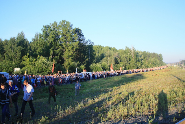 -Именно это я ощутил. Из сводок средств массовой информации я знаю, что в крестном ходе участвовало более 100 тысяч человек, но у меня было чувство, что в ту ночь в Екатеринбурге причащалась вся многомиллионная Россия, что каждый человек, проживающий в России, православный христианин. Не покидало мое сердце одновременно радостное и тревожное чувство. На глазах происходило что-то очень значимое для всей России, для всего русского народа и человечества. Пред нами предстоял 22-ух километровый крестный ход. Я не был уверен в том, что смогу пройти это расстояние, понимая, что ноги у меня не самые крепкие и я уже не такой спортивный, как раньше. Были сомнения в своих физических возможностях, но в какой-то момент я понял, что другой альтернативы нет и быть не может. Надо идти. Когда начался крестный ход я почувствовал, как вдруг какая-то сила подняла людей и мой дух в этот момент укрепился на столько, что мне уже не было дела до моих сомнений и внутренних переживаний, я уже не думал, хватит у меня физических сил, или нет. Было одно желание – идти, и тут все пошло единым ходом, без единой мысли: «Скоро ли дойдем? Сколько осталось?». Было уже не важно. Идем и идем, когда дойдем до Ганиной ямы, тогда и дойдем. Я просто шел, молился и так было легко и хорошо. Впереди шел Святейший Патриарх, задавая тон для всех, а народ шел за ним. Это было очень впечатлительно, но это с созерцательной точки зрения. А с духовной точки для себя я увидел это еще глубже. Я понял и почувствовал, что все это не просто так; свершается в этот момент великое таинство, еще не понятое до конца, не осмысленное человеческим разумом. Это была не просто ходьба народа, а переход в другое измерение времени. Жизнь человека делится на две части. В момент смерти человек переходит из одной части в другую. Из жизни земной, в небесную. Человек боится этого момента перехода в другую, неведомую ему жизнь. Мы не видим момента этого перехода, но Бог знает и видит это. Об этом мы знаем из священнописаний. Святые отцы объясняют так, что церковь делится на две части. Земная церковь и небесная. Земная церковь – это воинствующая часть, когда происходит еще борьба за спасение. Небесная церковь – это когда человек уже почивает с Богом. Смерть-это переход из воинствующей части церкви в торжествующую, небесную часть. Это и есть самое важное дело человека, пришедшего в этот мир –духовное его очищение, воинствующее спасение здесь и переход в торжество небесной вечности после его телесной кончины.