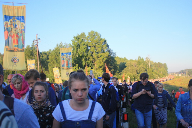 За две недели до крестного хода, я проехала и прошла паломницей “царский путь”, записав множество видео интервью в разных монастырях Екатеринбургской епархии. Видела своими глазами, как готовятся к встрече святейшего патриарха Кирилла в монастырях, как красятся заборы, меняются ворота, двери, чистятся территории, прицерковные помещения. Жизнь кипела во всех православных приходах Екатеринбурга и Свердловской области. Вся эта подготовка к важному событию напоминала преддверие празднования Пасхи, только без вязки вербы и ожидали на этот раз не воскресение Христово, а ночь скорби об убиенном последнем самодержце Российской империи.