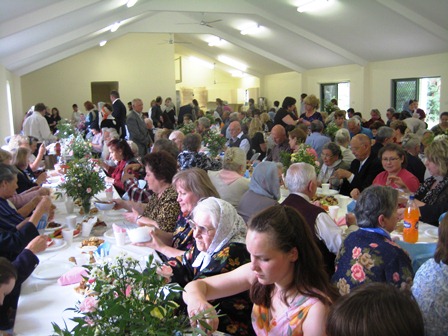 После литургии, содержательной проповеди Первоиерарха РЗЦЗ Илариона и целования креста, гостей пригласили разделить праздничную трапезу. За столы с яствами, накрытыми белыми скатертями село около 300 человек. Мед, бублики, торты, квашеную капусту, настоящий монастырский квас можно было купить здесь же, и увезти для тех, кому не удалось побывать на великом торжестве. Все было устроено с любовью, изысканно, Богоугодно. Видно было, что за этим стоял великий труд. В поддержку монастыря провели лотерею и аукцион праздничных тортов, искусно приготовленных монахинями и трудницами монастыря. В заключении трапезы слово держал архиепископ Монреальский и Канадский Гавриил. Он рассказал о том, с какими почестями встречали Курскую Коренную икону в Москве и в Курске.