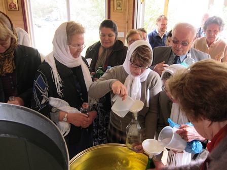 После благословения Владыки Илариона гости стали разъезжаться. Кто – то еще раз пошел в храм, чтобы проститься с Чудотворной иконой. В храме у иконы был прочитан акафист Божией Матери с помазыванием елеем.