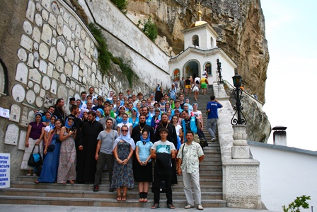 -Мы очень много посетили православных святынь, монастырей, и Бог послал нам незабываемые встречи. Господь соблаговолил нам побывать в Женском монастыре во имя преподобного Алексея, человека Божия, в поселке Золотухино Курской области. Побывали, также, на вечернем Богослужении в храме преподобных Старцев Глинских. На литургии в храме святых Царственных Страстотерпцев и в Сергиево – Казанском соборе молодежь пела в церковном хоре - создался сводный хор делегатов съезда. После литургии в Успенском соборе Свято – Троицкой Лавры Подмосковья, мы встречались с наместником монастыря Архиепископом Феогностом. Затем совершили молебен у мощей преподобных Кирилла и Марии – родителей Сергия Радонежского в Покровском монастыре Хотьково. В Воронеже мы поклонились святым мощам святителя Митрофана Воронежского в Благовещенском кафедральном соборе; в Муроме побывали в Свято Троицком Новодевичьем монастыре и поклонились мощам благоверных кн. Петра и кн. Февронии; в Свято – Благовещенском монастыре - святым мощам благоверного князя Константина и чад его Михаила и Феодора, мощам Ильи Муромца. Господь нам дал возможность, приложились к чудотворным иконам Божией Матери «Знамение», «Тихвинская», «Иверская», «Скоропослушница». В Костроме в Богоявленско – Анастасинском монастыре приложились к Чудотворной иконе Феодоровской Божией Матери. Посетили Инкерманский Свято – Климентовский пещерный мужской монастырь в Севастополе; посетили Храм Воскресения Христова в Форосе. На всю жизнь всем запомнится крестный ход протяженностью в десять километров, который мы совершили с Курской Чудотворной иконой от Владимирского собора – усыпальницы адмиралов до Херсонского собора святого Владимира. Затем состоялась торжественная литургия во Владимирском соборе в Херсонесе Таврическом.