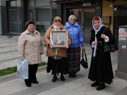 Одна благочестивая женщина из Сант Петербурга, Галина Симакова, узнав о том, как любят русских в Болгарии, решила подарить храму Святая Параскева (который известен ещё и как храм Стара Петка) писаную маслом икону. Она ещё не знала, какую именно икону ей хочется приобрести. Знала лишь то, что это должна быть сугубо русская икона. Долго ходила Галина, искала, выбирала. Пока не увидела её ... ту самую икону, которую она уже мысленно себе представляла в далёком болгарском храме. И была эта икона "Святой праведный Иоанн Кронштадтский:" ... А тем временем, священник Владимир Сафронов из села Млёво Удомельского благочиния Тверской епархии рассказал мне, что в начале ХХ века в храме села Млёво побывал Иоанн Кронштадский и подарил облачение, в котором вёл службу в этом храме. Это были набедренник, епитрахиль и филонь из черного бархата, расшитые цветными шелковыми нитями и серебром. Сказал, что храм во Млёве не закроется до второго пришествия Иисуса Христа. Отец Владимир улыбнулся тогда и добавил, что пророчества Святого праведного Иоанна Кронштадтского вселяют уверенность в будущее. И пообещал передать в дар Болгарии святую частичку облачения батюшки. Не смогла Галина Симакова лично привезти икону в Болгарию, возложила эту богоугодную миссию на меня, недостойную Рабу Божию Ольгу. Весь Пловдив жужжал как улей, когда отец Эмил Паралингов развесил объявления о предстоящем вручении иконы святого Иоанна Кронштадского в каждом из многочисленных храмов древнего Пловдива. Икону и святую частичку вышел встречать весь город. Случилось это событие, записанное в летопись храма, 8 апреля 2010 года. Матушка Анна, супруга отца Эмила Паралингова, опубликовала 12 апреля 2010 г. на официальном сайте Святого Синода Болгарской Православной Церкви - Болгарской Патриархии статью "Благословение от Святого Иоанна Кронштадтского". В статье она которой поведала о торжественной встрече иконы и частички облачения Святого Праведного Иоанна Кронштадтского в Пловдиве. О событии узнала вся Болгария. Дарение икон храмам в Болгарии стало нашей доброй традицией. И вскоре иконы св.Иоанна Кронштадского, Сергия Радонежского, Серафима Саровского, Матроны Московской, Царских Страстотерпцев были переданы иерею Милену Недеву из Пловдива, игумену Кричимского монастыря иеромонаху Антиму, матушке Матроне, игуменье монастыря "Святой Пророк Илия» в Софии (которая родом из России , а постриг приняла в Болгарии), протоирею Эмилиану Михайлову из Бургаса и другим священникам. Вскоре всё та же Галина Симакова и её близкая подруга из города Вышний Волочек Ольга Скрипкина, мать монаха Мельхиседека, решили заказать новую икону специально для храма «Святая Параскева". Долго мы скрывали от батюшки, что же это будет за икона. А они заказали написать икону Божией Матери Леушинской - "ПОХВАЛА БОЖИЕЙ МАТЕРИ" или "Аз есм с Вас и никтоже на ви» (празднование - пятая суббота Великого Поста). Вы уже догадались, почему именно эту икону они решили заказать. Ну конечно же! Ведь это любимая икона отца Иоанна Кронштадтского. А заказали они икону иконописице Феодоровского Подворья В Царском Селе Галине Майоровой, получив предварительно благословение ныне ПОЧИВШЕГО АРХИМАНДРИТА ЕЛИАЗАРА, духовника АЛЕКСАНДРО-НЕВСКОЙ ЛАВРЫ в Санкт Петербурге. Прежде чем попасть в Болгарию, икона проделала долгий и нелёгкий 