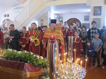После литургии состоялся молебен о святых. В при церковном зале сестричество собора встречало прихожан горячей выпечкой. С кухни исходил аромат только что испечённых пирожков с капустой, картошкой, грибами, напоминая тёплый семейный очаг. Приветливые улыбки хозяек, радушные «спасибо» прихожан создали необыкновенно тёплую атмосферу. Пожелаем же в этот день всем семейного счастья, благополучия и исполнения самых смелых желаний.