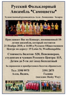 Русский Фольклорный Ансамбль “Самоцветы” приглашает на десятилетие.