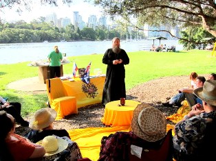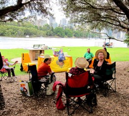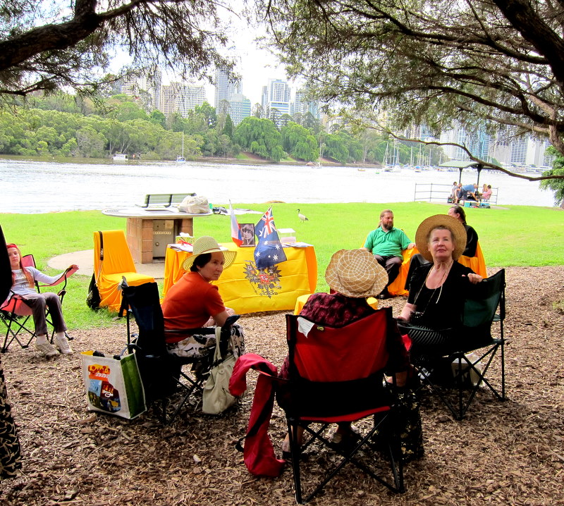 После художественной выставки, в два часа дня люди собирались на реке Брисбен, в живописном месте, у скал. День был солнечный и после длительных тропических дождей, выбранное последнее воскресенье октября для поэтических чтений на природе, оказалось особенно удачным.