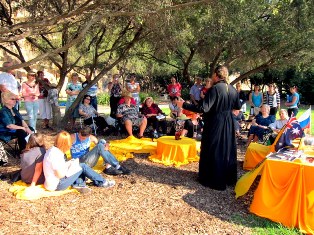 Накануне было объявлено, что любителипоэзии и художественного искусствасобираются у собора на KangarooPoint. Кто-то ехал на литургию, кто на выставку детского творчества, организованную Свято – Николаевской школой, а кто – то на Цветаевский костер, организованный поэтическим салоном «Лампада».