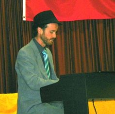 Стихотворение собственного сочинения, посвященный А.С. Пушкину прочитал Борис Монахов, который, также, является постоянным членом музыкально – поэтического салона «Лампада». Смокинг, цилиндр, белые перчатки, тросточка – так был одет сегодня Борис. Словно представитель пушкинского салона «Зеленая лампа» (1819) явился на пушкинский праздник в Брисбен.