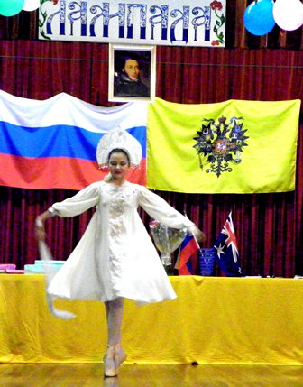Затем танцевали всемполюбившиесятанцовщицыМария Тюкавкинаи Нина Судницина. Нина обворожительно танцевала подмузыкуП. И.Чайковского «Русскуюкрасавицу». МашаТюкавкина танцевала вариации на музыку Риккардо ДригоКоломбино. Руководительдвух этих очаровательных брисбенских танцовщиц Ольга Шикина.
