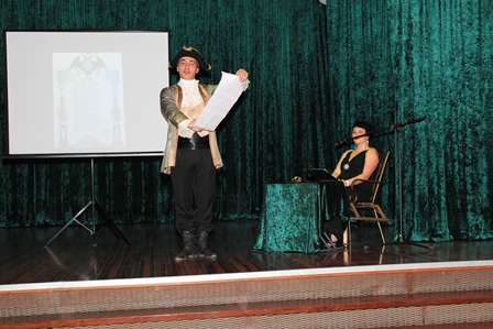 Жанна Горбачева с легким юмором и иронией провела экскурс в историю возникновения балов на Руси. На экране мелькали сцены балов разных эпох, начиная с Петровских времен до начала 20 века. Пушинками кружились пары в вальсе, затем полонез, котильон, мазурка... Кульминацией сценического действия стало чтение Указа Петра I “О достоинстве гостевом, на ассамблеях быть имеющем” в исполнении Алексея Экзархо.