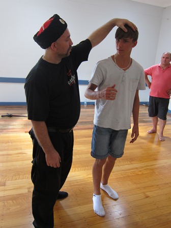 Мне очень понравилось то, что Андрей на протяжении всего семинара связывал казачье боевое искусство с фольклором. Он показывал, как навыки умения держать ритм при ходьбе, точные движения в работе с нагайкой важны в плясовых комбинациях. Андрей показал, как обороняться от ножа, шашки, нагайки, как применялись эти навыками казаками в ритуальной пляске, в песне и частушках. Андрей учил правильному дыханию, постановке природного голоса и опоры в пении, как поставить себя на сцене, как освоить пространство, как поставить руки, как чеканить дробь и вести в пляске монолог, диалог, или плясовое соперничество.