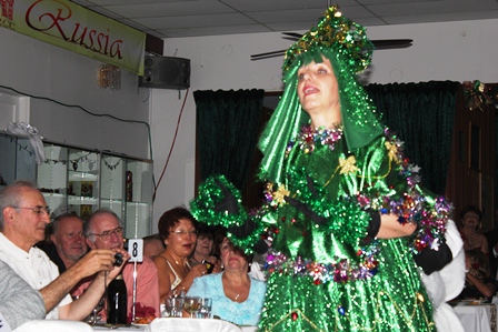 Веселый Снеговик (Наталья Кромина) и Красавица Новогодняя Елка (Елена Проскурина) развеселили присутствующих так, что гости начали выбегать в круг и танцевать. Кульминацией представления стала сцена пробуждения падишаха, проснувшегося в костюме Деда Мороза. Происходящее надо было видеть, а читать об этом все равно, что пить чай, глядя на кусочек сахара и думать, что чай от этого становится слаще. Энергичный танец, в котором приняли участие все артисты, зажег публику и перешел в танцевальную программу, подготовленную Еленой Госсэ и Аллой Экзархо. Они подготовили новый песенный репертуар и радовали гостей своим исполнением на протяжении всего вечера. Вечер украсил, также, дуэт 'SaXy' (Андрей и Наташа). "SaXy" Duo имеет многолетний опыт работы в международных 5-звездочных отелях в таких, как Sheraton Hotel, Kempinski Hotel, Абу-Навас Hotel, Intercontinental Hotel в Китае, Тунисе и Эмиратах, на круизных кораблях. Репертуар их состоит из лучшей музыки 1950х -2000х годов. Гости веселились от души, а мне было интересно узнать мнение о вечере у представителей старшего поколения.