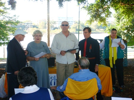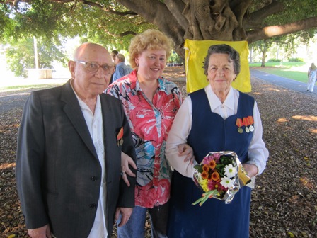 На встрече присутствовали члены Совета Российских Соотечественников в Австралии: настоятель Свято – Николаевского собора в Брисбене протоиерей Гавриил Макаров и Константин Дроздовский; корреспондент Русского Радио из Сиднея Люба Примачек. Дорогими гостями были ветераны Великой Отечественной Войны: Зоя Рувимовна Нисина, которая в тринадцатилетнем возрасте работала в военном госпитале нянечкой, а позднее медицинской сестрой. После войны 50 лет проработала врачом на Украине. Сегодня она прочитала нам стихи о войне. На встрече присутствовал ветеран Великой Отечественной Войны Михаил Ильич Нисин. Сегодня у костра памяти он пел песни военных лет.