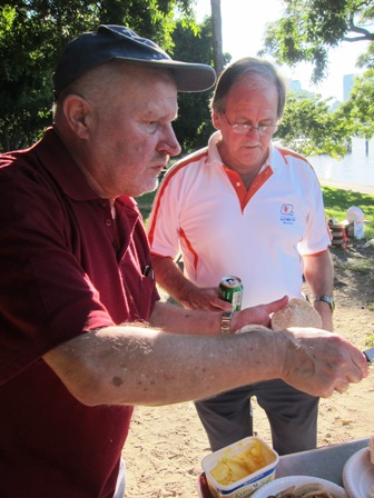 После торжественной части у Костра Памяти была организована полевая кухня – барбекю. Сидя за столом, любуясь проплывающими мимо пассажирскими катерами, гости продолжали поэтические чтения. Со сборником стихов на встречу пришел Олег Голиков и вдохновенно читал стихи Константина Симонова. Прозвучали стихи современных брисбенских поэтов. Вспомнили ветеранов, проживающих в России и в других странах. У присутствующих наворачивались слезы от теплоты встречи. Представители русской молодежи, поживающие в Австралии, которые впервые присутствовали на встрече ветеранов, испытали особые чувства уважения к дедам и прадедам, защитившим Родину от фашизма. При интервью молодые люди отметили, что сегодня для них было очень важно услышать имена поэтов, несколько строчек из их короткой жизни и их стихи. Юные стихи погибших поэтов не оставили русскую молодежь, проживающую в Австралии, равнодушной. Кроме стихов, также, тронуло молодежь и то, что погибшие поэты - юноши и девушки были их ровесниками (от 18 до 25).