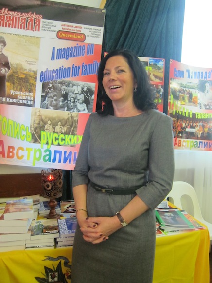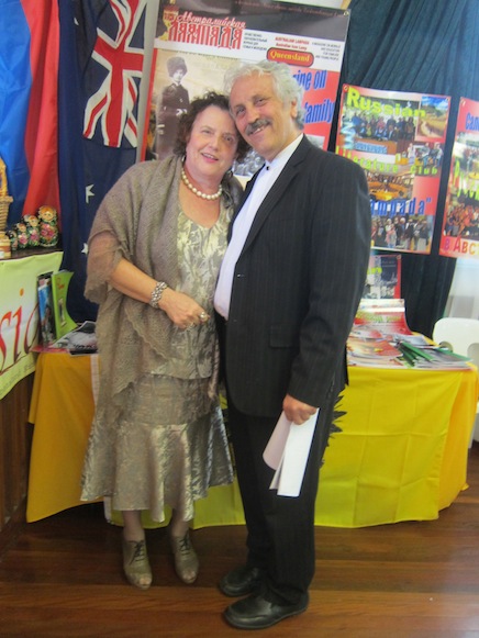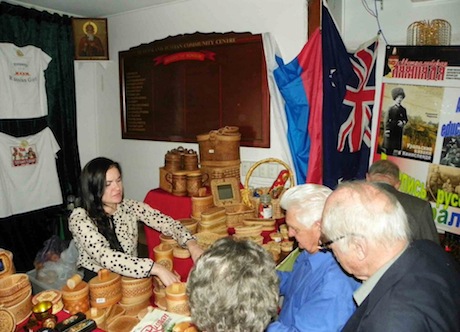 Об истории дипломатических отношений Австралии и России рассказала Почётный Консул Российской Федерации в Квинсленде Ирина Брук. Посольство РФ во главе с Послом Владимиром Николаевичем Морозовым выступило с идеей проведения праздника, посвящённого 200-летию Бородинского сражения и Победы над Армией Наполеона в 1812 году. Открытая выставка в зале Русского Центра подробно отражала исторические события в России и историю эмиграции русских в Австралию. Многие копии письменных экспонатов были предоставлены Посольством России в Австралии, а также, получены из архива Государственной библиотеки Квинсленда. Экспозицию по истории русских в Австралии наглядно завершала выставка редакции журнала «Австралийская лампада» – летопись русских в Квинсленде, представив фотографии по истории эмиграции из архива Свято – Николаевского собора и жителей Брисбена. На выставке были представлены книги брисбенского автора Людмилы Ларкиной «Уральские казаки в Квинсленде» - об Уральском Казачьем Войске, о жизни русских в первые годы пребывания на зелёном континенте, о строительстве первого русского православного храма в Австралии. Книга о юном гардемарине, ставшем в Австралии иконописцем «Брисбенский иконописец Арсений Савицкий», тоже, вызвала большой интерес у гостей, интересующихся историей русских в Австралии. Говоря об оформлении зала, следует заметить, что особый колорит был предан выставкой – продажей русских сувениров, организованной новым комитетом Русского Центра. Посетители имели возможность не только любоваться, но и приобрести предметы прикладного творчества, выполненные из природного материала, украшенные техникой тиснения по бересте, хохломской, палехской, Сергиево – посадской росписью по дереву.