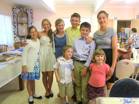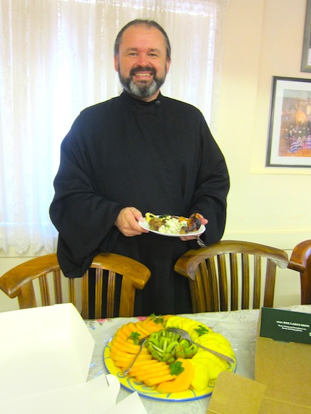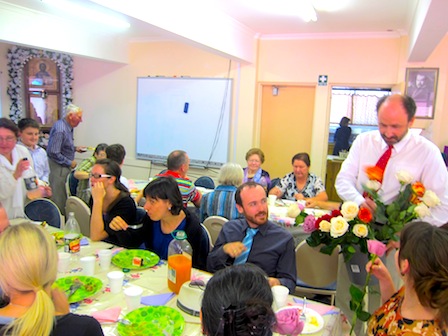 После литургии послужили молебен о здравии и благополучии певчих хора. В при церковном зале отец Гавриил еще раз поблагодарил хор, регентом которого в течении восьми лет является Артём Мень. Сестричество и правление собора присоединились к поздравлениям. В свою очередь, Артём поблагодарил всех присутствующих за молитвы и преподнёс, в знак благодарности, всем певчим цветы и подарки. Надо отметить, что в церковном хоре Свято – Николаевского собора поёт много молодёжи и детей. Затем был дружный обед и чаепитие с тортами и разной выпечкой. В заключении для каждого присутствующего все вместе пропели «Благодатный дом».