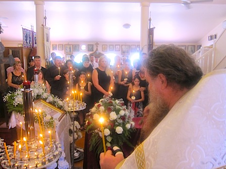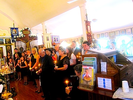 General- Ataman Vladimir Sergeievich Tolstov, the officers and men of the Ural Cossack Army were the only ones who succeeding in preserving their military flags and getting through all the customs check points on their journey to Australia. Until 23 September 2007 the flags were stored at St. Nicholas Cathedral, where the funeral service of Milissia Tolstov was held today. Replicas of the flags of the Ural Cossack Army, which are kept in the walls of the cathedral, today witnessed the farewell of an entire era. This year, 2013, St. Nicholas parish will celebrate its 90th anniversary. The parish was founded in the year of the arrival of a group of 66 Ural Cossack men and women and children, one of which was the five-year Milissia. Today the cathedral hosted our farewell to Milissia. Judging by the many relatives, including grandchildren and great-grandchildren, who came to farewell the oldest member of the Tolstov family, the book of the family history of the White general and legendary Cossack Army in Australia will never be closed. The funeral service was conducted by the dean Father Gabriel Makarov.