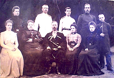 Photo 3: The Tolstov family in Russia in 1900. Second row, third from left V.S. Tolstov who made it to Australia. All the others died in Russia.