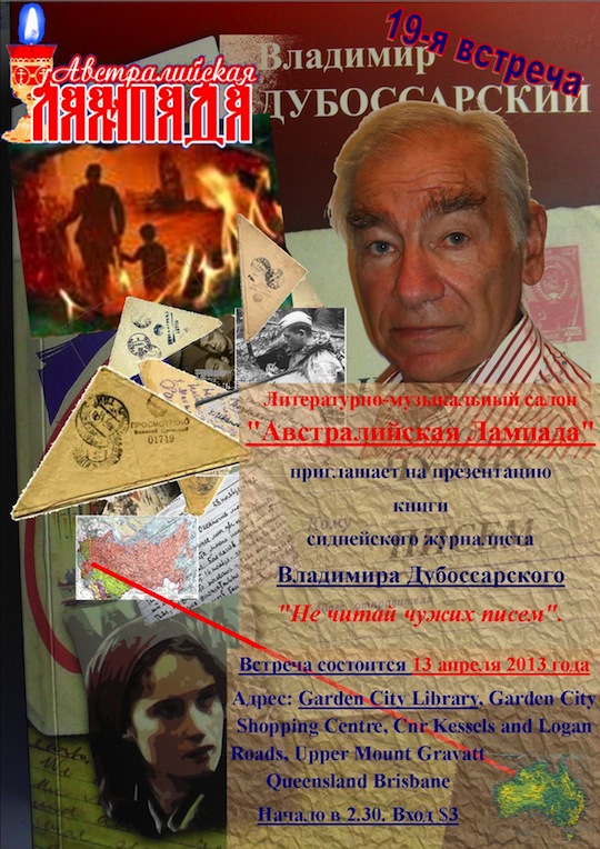 Тема: Презентация книги сиднейского журналиста Владимира Дубосарского "Не читай чужих писем".