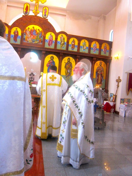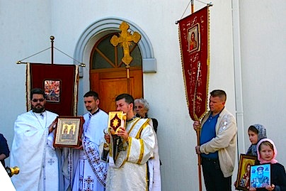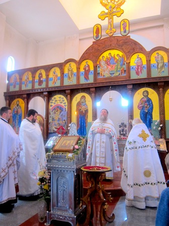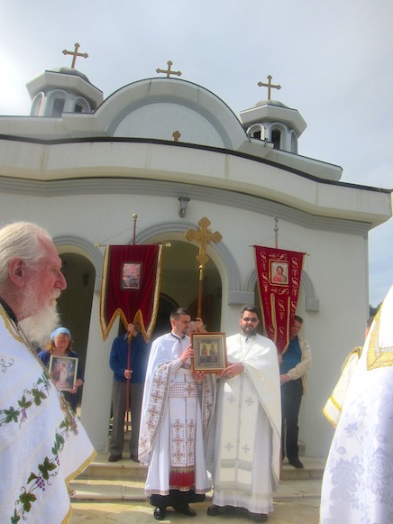 После литургии верующие с хоругвями и иконами вышли на улицу. Погода благоприятствовала торжественному крестному ходу. В завершении торжеств состоялся для всех желающих обед в при церковном зале. Сидя, по – семейному, за чашкой чая, представители старшего поколения вспоминали о строительстве сербского храма и, улыбаясь, говорили: «В этом храме есть один камушек, купленный нами…»