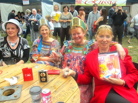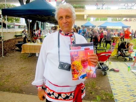 И вот мы, наконец, добрались до местечка, где разложили свои «рас полным полна коробочки» русские «купцы». Сегодня здесь стояли ряды с русскими матрёшками, павловскими платками, мезенской, хохломской росписью. Ценители русского искусства могли приобрести в свою коллекцию, или в подарок шкатулки из тиснёной бересты, палехской, федоскинской, мстера росписи. Комитет Русского Центра, также, принял активное участие в ярмарке, организовав распродажу сувениров.
