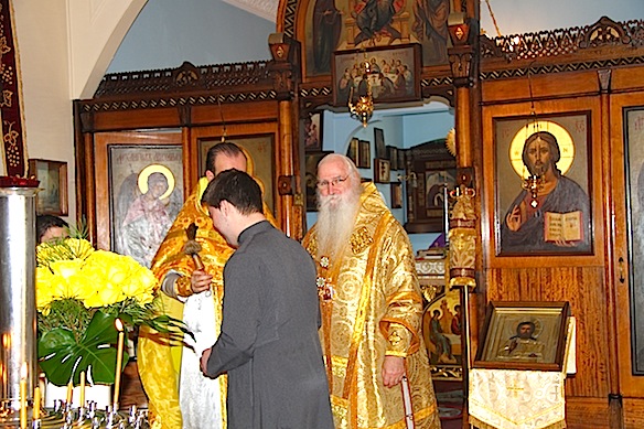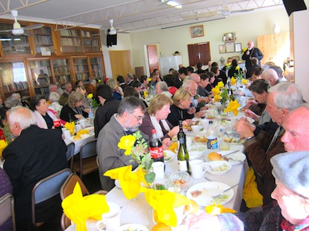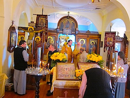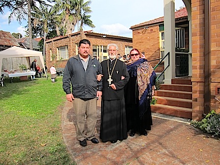 На литургию приехали не только жители Сиднея, но и из разных Австралии. После литургии, которая прошла очень торжественно, украшенная великолепным пением церковного хора, состоялся крестный ход вокруг храма. После целования креста и окропления святой водой, все были приглашены за праздничный стол. Игумен Христофор поздравил присутствующих с праздником, поблагодарил прихожан за то, что в этот день они пришли разделить праздничную радость. К поздравлению присоединились отец Георгий, отец Давид и отец Александр. Они выразили свою благодарность сестричеству за приготовленный праздничный обед, а также, поблагодарили всех помогавших с других храмов. Со словами поздравительными выступил митрофорный протоиерей Михаил Ли, который сам является легендой. Еще в детстве, проживая в Пекине, китайский мальчик полюбил православие. Он пел в приходском хоре в церкви при Русской Духовной Миссии. Затем более 20 лет провёл в китайских лагерях. Сегодня отец Михаил радовался празднику и его улыбка еще больше радовала присутствующих. В разгар застолья была организована лотерея, во время которой разыгралась ваучер на отдых, подлинные картины, корзины с подарками. Столы с блюдами русской кухни, стоявшие в три ряда в зале и на улице, говорили о гостеприимстве хозяев.