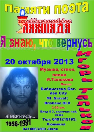 Вечер памяти Игоря Талькова в Австралии. "Я вернусь". Салон "Лампада" Брисбен.