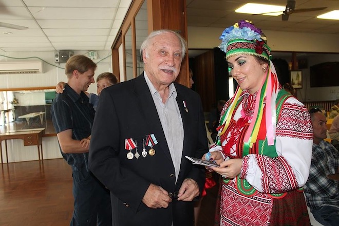 Наконец, появляются долгожданные почётные гости. Почётными гостями на празднике были сегодня: настоятель Свято-Николаевского собора в Брисбене протоиерей Гавриил Макаров с матушкой Ириной, Почётный Консул Российской Федерации в Квинсленде и в Виктории Ирина Брук, председатель Русского Благотворительного Общества в Квинсленде Сергей Волощенко. На праздник прибыли два казачьих атамана: гость из России -советник губернатора Забайкальского края генерал-атаман Сергей Георгиевич Бобров, и гость из Сиднея - атаман посольской Забайкальской станицы в Австралии Семён Михайлович Бойков.
