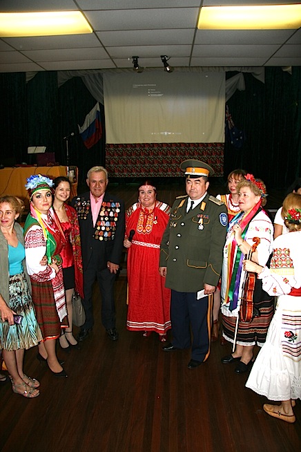 Завершая встречу, под пение Ольги Богдановой песни «Лампадочка» на слова Людмилы Ларкиной, все гости прошли на сцену для того, чтобы фотограф Максим Ларкин мог сделать общее фото для истории русских в Австралии. Кто-то скомандовал: "Красивые национальные костюмы-вперёд! И казаки-атаманы – тоже вперёд! Все остальные сзади!". Гости откликнулись на «приказ» очень дружно. Я стояла за батюшкой, смотрела на его седые волосы и думала: "Какое счастье, что я сегодня здесь, что встретила много хороших людей, услышала русскую речь, приобщилась к русской культуре."Ребята, давайте помнить, любить себя и друг друга здесь, в прекрасной кенгуринной Австралии.