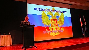 Обращаясь к гостям, посол России сказал, что рад приветствовать всех пришедших отметить день России, символизирующий независимость и единство страны.