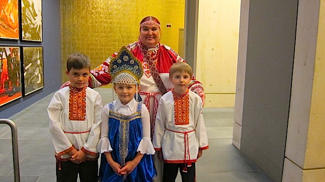 У входа в зал гостей встречали ученики школы при Российском посольстве в Канберре в русских народных костюмах.