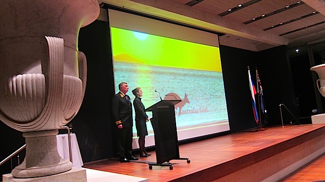 В зале Национальной картинной галереи собрались депутаты австралийского парламента, члены дипломатического корпуса, представители МИД и деловых кругов Австралии, российские соотечественники, представители СМИ.