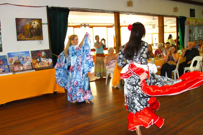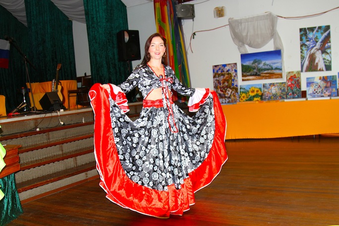 Перед гостями выступили, также две девушки из танцевальной группа Rubies Fire”.Они несколько раз выходили в центр зала и с задором танцевали цыганские танцы. Зрители были в восторге. Особенно ликовали дети и, даже, пускались в пляс, затягивая в круг для танцев своих родителей.