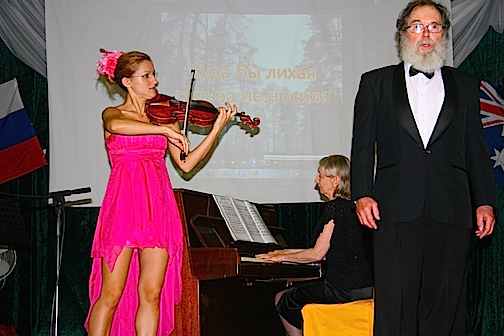 Зал быстро заполняется людьми. Стол почётных гостей сегодня протянулся через весь зал от самой сцены. В качестве почётных гостей прибыли: настоятель Свято-Николаевского собора протоиерей Гавриил Макаров с матушкой Ириной, Почётный Генеральный Консул в округах Квинсленд и Виктория - Ирина Брук, Председатель Русского Этнического Общества в Квинсленде Сергей Волощенко, доктор лингвистических наук Роберт Вудхаус, вице президент Пушкинского Фонда Николай Димитровский-Байков, секретарь Пушкинского Фонда Елена Попова. Много прибыло гостей из Сиднея: Ирина Симонян – и.о. председателя Совета Российских Соотечественников Австралии, два потомственных казака- Алексей Пятков и Николай Чубуков. Николай еще известен, как представитель движения скаутов в Австралии с 40-летним опытом работы с молодёжью. На встречу из Сиднея, также, прибыли: атаман казачьего войска штата NSW Михаил Овчинников со своей супругой и корреспондент СМИ журналист Любовь Примачек.