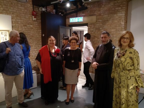 7. Открытие выставки по книге "Гардемарин с чужой судьбой" в Гонконге. Справа настоятель Петропавловской церкви в Гонконге протоиерей Дионисий Поздняев с матушкой Кирой Поздняевой. 3о октября 2018.