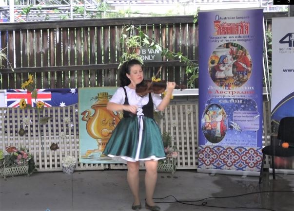 Дэвид родился и вырос в Австралии, в городе Сиднее, в итальянской семье. С юношества любил петь, сочинять музыку, стихи. Выступал на сценах Италии, участвовал в конкурсах певцов, организовывал инструментальные и певческие ансамбли, в которых был руководителем и солистом. Конечно же, прозвучали на ярмарке и украинские песни. Инесса Макинтайр спела известную, украинскую песню «Черемшина», чем очень порадовала присутствующих на ярмарке украинцев. Евгения Бакоуполос под аккомпанемент баяниста Георгия Черных исполнила песни на украинском, русском, польском, литовском языках. Выходила на сцену на сцену в разных костюмах – в русском и в украинском. Заворожила всех игрой на скрипке Ирина Лготкина, исполнив ирландские народные мелодии, а также несколько классических произведений. Родилась она в уральском городе Екатеринбурге, получила степень доктора искусств по классу скрипки в Екатеринбургской консерватории и с самой юности гастролировала по Западной Европе, как исполнительница: играла в московском Кремле, во дворцах Санкт-Петербурга и во многих других городах России. Шуточный танец «Коробейники» исполнил танцевальный дуэт «Русская душа в Австралии» (Людмила Ларкина и Александра Ященко). Танец завершился весело, в пляс пустились присутствующие гости, образовав плясовой, задорный хоровод. Фольклорный танцевальный ансамбль индонезийского сообщества под руководством Thia Taylor исполнил народные индонезийские танцы, показав мастер-класс, в котором с радостью участвовали все присутствующие. Яркие костюмы индонезийцев, их задор и песни очень украсили праздник и это подтвердило еще раз, что народны разных стран и континентов, разного цвета кожи и разных культур могут дружить, помогать друг другу, претворяя в жизнь свои самые смелые мечты и планы. Порадовали гостей ярмарки и мастера прикладного искусства, которые организовали выставки, продажу своих изделий. Мебельщик Константин Колисниченко привез на выставку-продажу мебель ручной работы. Константин родом из города Артем Приморского края. Судьба привела его в Новую Зеландию, а в 2016 году- в Австралию. Константин более 25 лет имеет опыт работы с деревом твердых пород, является уникальным мастером – краснодеревщиком. Столярную работу и дерево полюбил с раннего детства, посещал кружки «Умелые руки» и «Мягкая игрушка». Еще один замечательный мастер по дереву, краснодеревщик Виктор Кошманов привез на ярмарку декоративные панели, столешницы, настенное панно ручной работы, выполненные им из твердых пород дерева. Используя разные цвета дерева, Виктор делает уникальные предметы, украшенные разными видами орнаментов. Увлекается работой по дереву Виктор уже давно и радует своим искусством окружающих. Юлия (Yulia's Treasures) представила на выставке оригинальные сумки ручной работы. Тонкая душа сибирской девочки с самого детства искала прекрасное вокруг себя и раскрылась в вышивке, вязании крючком и на спицах, бисероплетении и в других видах прикладного искусства.