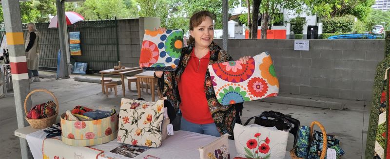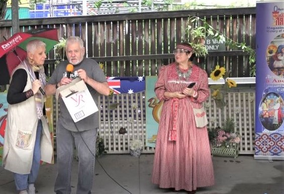 Творческие сокровища, сделанные Ириной в Брисбене, можно найти в домах по всему миру: Англии, Италии, США, Греции и, конечно же, Австралии. Светлана Сафронова привезла на ярмарку вышитые иконы, над которыми она трудится уже не один год. Родилась Светлана и жила в Украине, имеет 45 лет трудового стажа из них 36 лет инженером строительной организации. После выхода на пенсию вспомнила о рукоделии мамы и сама, как и мама, увлеклась вышивкой, а затем и бисерной вышивкой. Дочь Светланы-Ирина (Iryna Eastment) представила на ярмарке очень забавные, веселые, детские игрушки. Две индийские девушки Harshpreet Kaur и Gagandeep Kaur привезли на ярмарку прекрасные индийские украшения. Регистрируясь на ярмарку, они преставились : «Мы две невестки - жены двух братьев». Год назад Harshpreet и Gagandeep открыли в Брисбене свой бизнес под названием «Shineinstyle Jewellery». Конечно же на ярмарке были и картины местных художников. Надежда Шнайдер представила свои картины, написанные акрилом. Родилась Надежда в Казахстане, много лет прожила на Украине, в Киеве. Рисовать начала в Австралии в возрасте 83 лет, обучаясь в Брисбене в художественной студии Нади Канц. Авторские картины были представлены двумя членам комитета Радио «Русский час» Еленой Проскуриной-Тилли и Людмилой Ларкиной. Лена не только пишет картины, но и делает украшения, увлекается таким искусством, как батик. Мои картины на тему «Храмы России», а также авторские книги тоже сегодня были здесь. Весь день на территории Радио 4 EB FM 98.1 играла музыка. Невзирая на дождь, люди танцевали, пели. Wayne Tilly, Wes Jackson, Waseem Ahmed жарили барбекю. Wayne Tilly также разыграл беспроигрышную лотерею. В завершении участниками мероприятия демонстрировались этнические костюмы разных народов Австралии. В демонстрации национальных костюмов приняли участие, как взрослые, так и дети. Восьмилетняя Елизавета Кристалева вместе с ее бабушкой Александрой уже не раз представляли украинские костюмы. Восьмилетняя Юлия Захваткина демонстрировала татарский костюм вместе с ее бабушкой Гельфинией. Надо отметить, что татарский костюм в Брисбене был представлен впервые, как и впервые был представлен киргизский женский наряд, который демонстрировала Надежда Черных-корреспондент и активный член редколлегии журнала «Австралийская лампада». На «Ярмарке мастеров» Надя встречала гостей и координировала размещение столов для выставки. Завершилось мероприятие чаепитием с домашним тортом «Наполеон», заказанным и купленным в европейском гастрономе в Капалаба и вкуснейшими татарскими сладостями чак-чак, с любовью приготовленными и пожертвованными Гельфинией Пеннер из Голд Коста. Собрав 21 мая 2022 года вместе представителей разных этнических сообществ Квинсленда, мы еще раз убедились, что наша русскоязычная комьюнити Квинсленда жива, позитивна, открыта и полна талантами, хотя нашлись и такие люди, которые пытаются назвать наше мероприятие политической акцией, размещая на просторах интернета, Фейсбук статьи от своего имени, представляясь уполномоченными от журнала «Австралийская лампада» и радио «Русский час», искажая информацию, пытаясь внести раздор между русскими и украинцами, проживающими в Австралии.