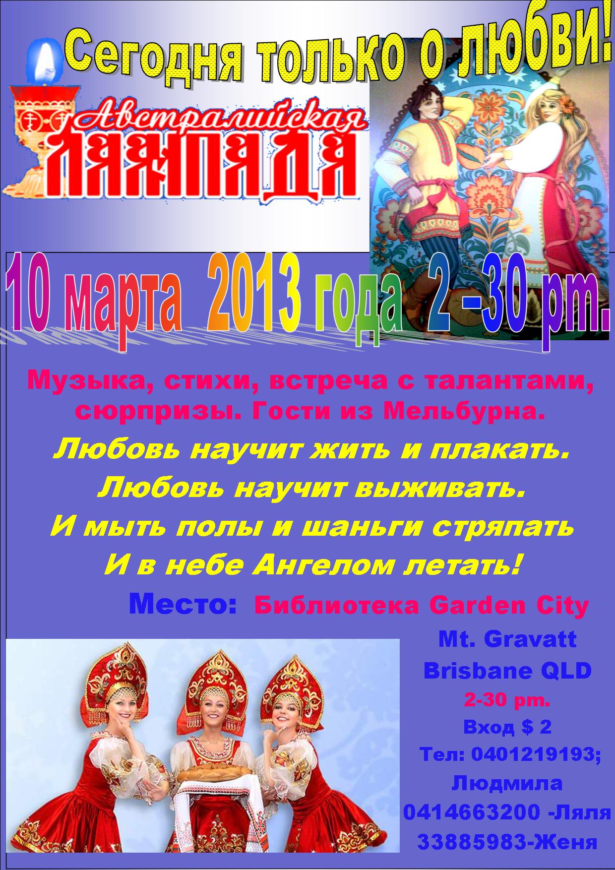Салон "Лампада" приглашает на 18-ую встречу 10 марта 2013. Брисбен. Австралия.